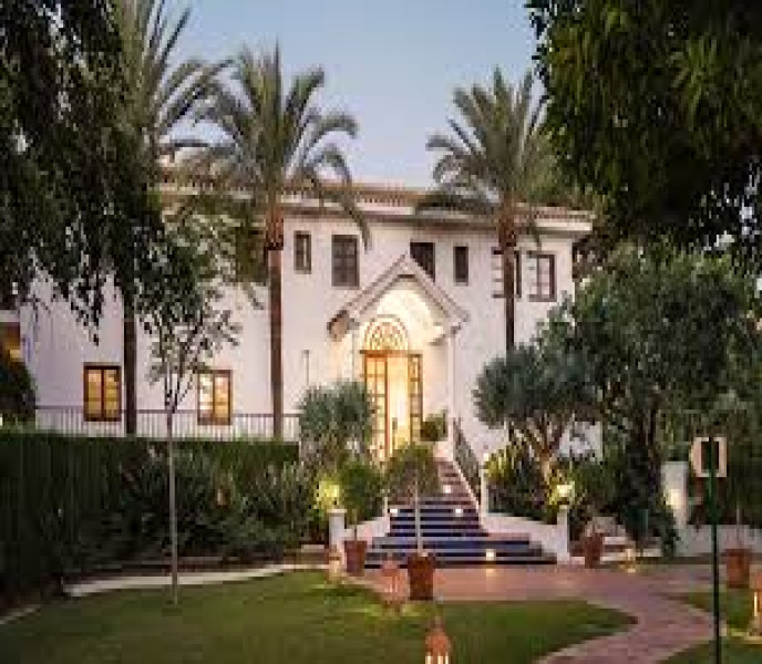 The residences of Buchinger Wilhelmi in Marbella stand in the shade of ancient palm trees with views of the Mediterranean Sea.