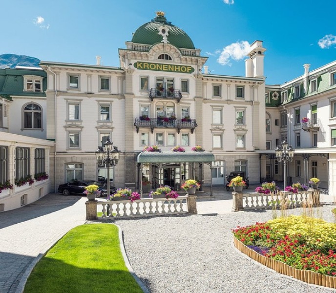 e of Pontresina, only six kilometres from St. Moritz. The only 5-star superior hotel in the village, it boasts some 112 spacious rooms and suites as well as the large and well-equipped Kronenhof Spa and several very notable restaurants. The architecture of Grand Hotel Kronenhof makes it one of the most splendid hotels in the Alps. This heritage-protected luxury-class establishment is located in the heart of the idyllic Engadin village of Pontresina, only six kilometres from St. Moritz